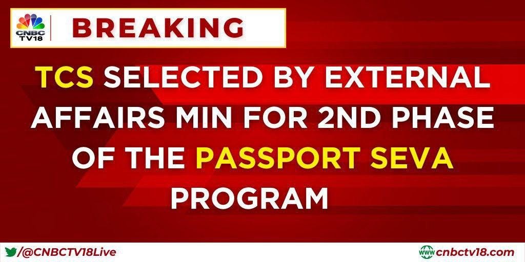 India’s largest IT services firm, has won the second phase of the Passport Seva Programme of the ministry of external affairs. Industry sources estimate the deal to be valued at about Rs 6,000–8,000 crore over a decade.